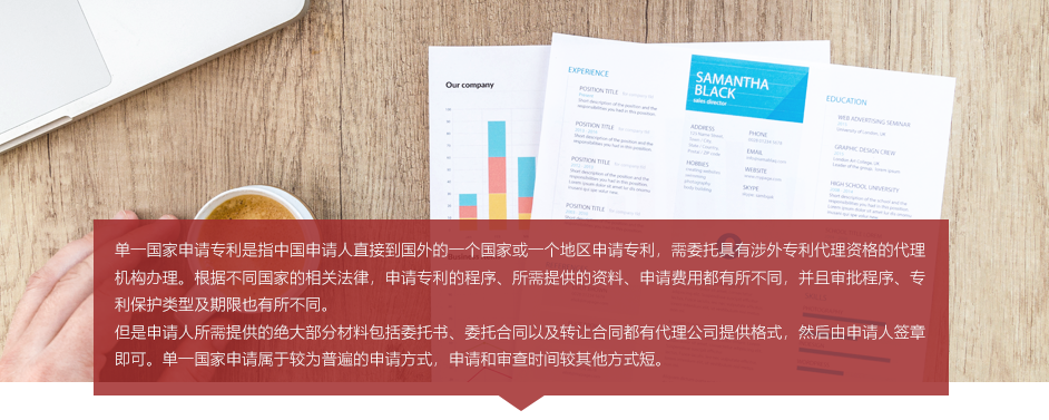 單一國家申請專利是指中國申請人直接到國外的一個國家或一個地區申請專利,需委托具有涉外專利代理資格的代理機構辦理。本項業務的實施單位為常州佰業騰飛專利代理事務所(普通合伙)。
