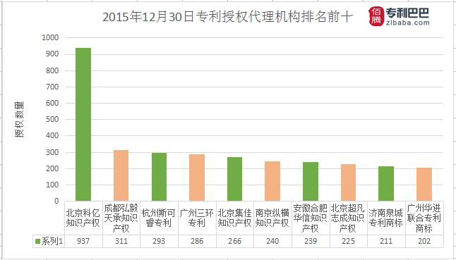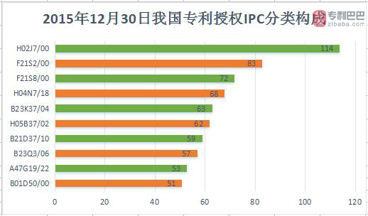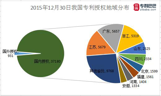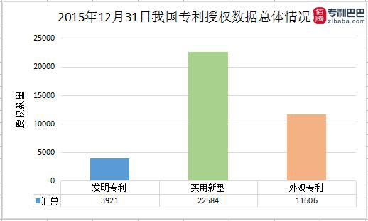 由專利巴巴數(shù)據(jù)監(jiān)控中心統(tǒng)計(jì),2015年12月30日中國專利授權(quán)數(shù)據(jù)共38111件。