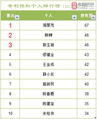 四、本周專利授權申請人排行榜